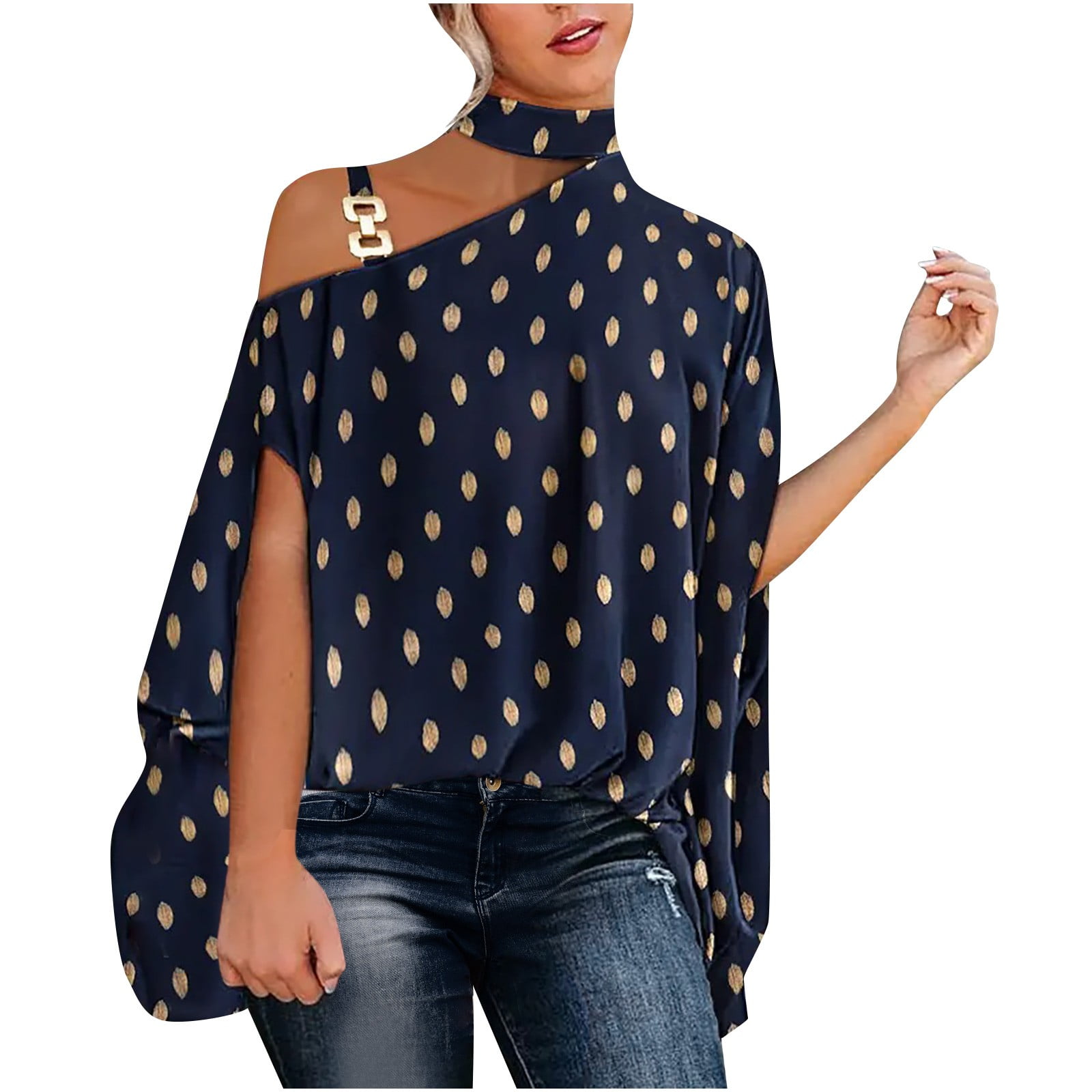 Women Casual Half Batwing Sleeve Halter Neck Off Shoulder Printed And Solid Loose Polluer Blouse Tops Walmart Com